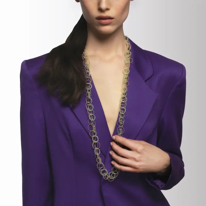 گردنبند بوچلاتی بیشتر شبیه یک اثر هنری است که روی بدن قرار میگیرد. این گردنبندها با دقت روی خط گردن طراحی میشوند و بافت آنها بهگونهای است که نگاه را بهنرمی هدایت میکند.