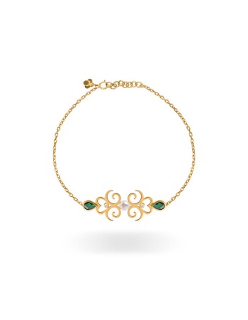 دستبند طلا ملکه طرح زنجیری با سنگ سنتتیک و مروارید