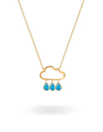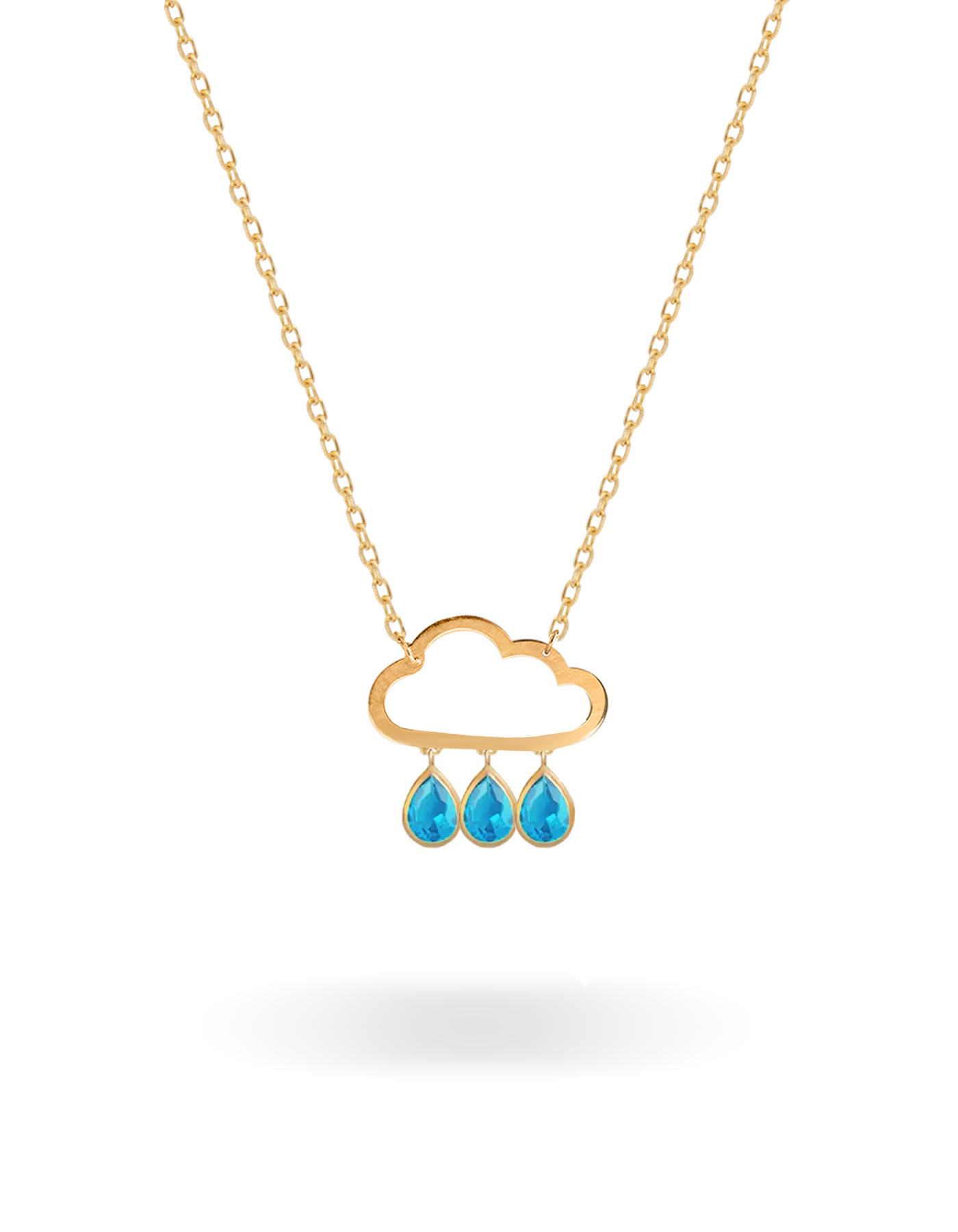 گردنبند طلا ابر تو خالی سه قطره از کالکشن آسمان و باران با سنگ سنتتیک
