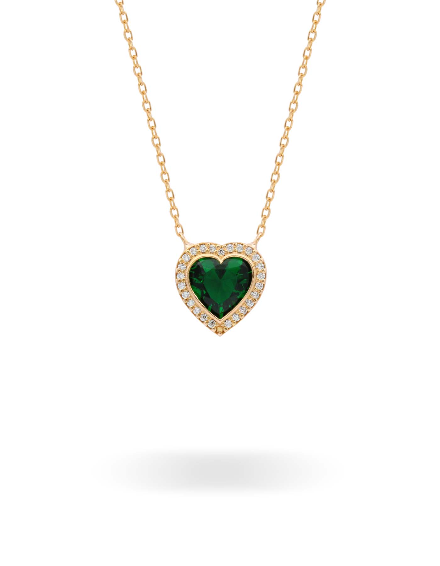 گردنبند طلا قلب پرنس سبز از کالکشن قلب و ولنتاین با سنگ سنتتیک